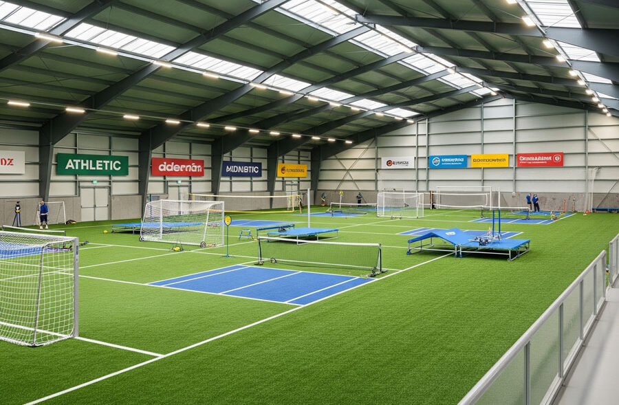 - پوشش و کفسازی: استفاده از ساندویچ پانل برای سقف و دیوارها و کفپوشهای متناسب با ورزش (مانند پلیاورتان یا تاتامی).